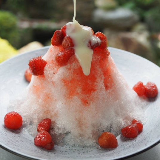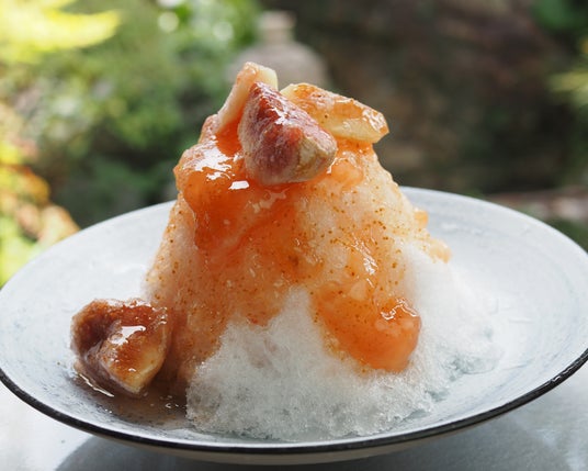 地元で採れた3種のフルーツ(いちご、いちじく、ブルーベリー)の果肉たっぷり濃厚な自家製氷蜜を贅沢に一つのお皿に集めた見た目も華やかなカラフルかき氷になります。3つのお味を一度に楽しめるのも魅力の一品になります。