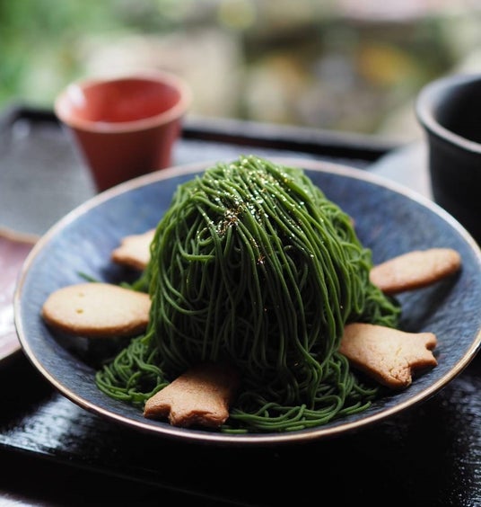 ◆贅沢で濃厚な抹茶モンブラン(別添え:亀サブレのパーツ、梅昆布茶付き) 1600円
