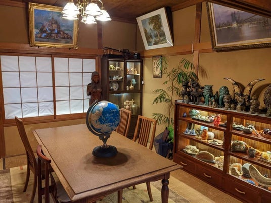 店内は畳敷きの和室や世界の民芸品、工芸品が飾られた部屋