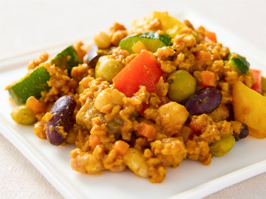 彩り野菜と5種類のお豆が楽しめる食べ応えのあるキーマカレー