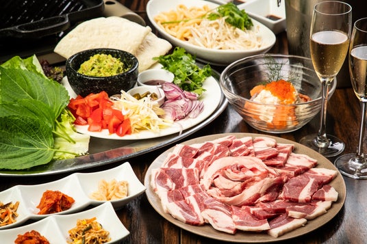 都心で手ぶらBBQが楽しめる「バグース赤坂見附店」に新たに『ラムギョプサルBBQプラン』が登場。ほどよく脂がのったジューシーなラム肉を9種の野菜で包んで味わうヘルシーなBBQです。ラム肉は特に脂の旨味が強いショルダー(肩)の部分を使用。肉の食感も楽しめるよう薄切り、厚切りの2種をご用意しております。