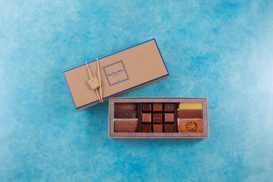 ■プティ ボワットゥ スブティル エテサクサクとした軽やかな食感のサブレ3種(「サブレ ヴィエノワ」「サブレ ヴィエノワ ショコラ」「サブレ ミエル アマンド」各1枚)、香ばしいクラッカン2種(「クラッカン ノワール」1枚、「クラッカン レ」2枚)、カカオの香りが豊かに広がるボンボン ショコラ9個を詰合せた贅沢なボックスです。