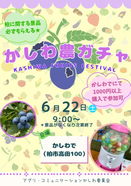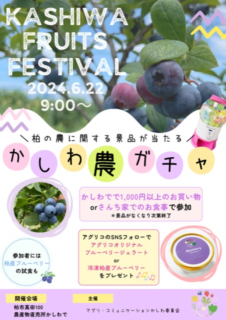 アグリ・コミュニケーションかしわ委員会が贈る夏のイベント「KASHIWA FRUITS FESTIVALかしわで」を開催します。