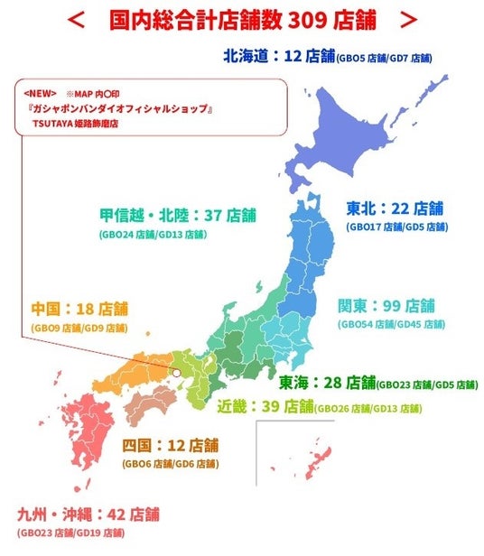 『ガシャポンバンダイオフィシャルショップ』TSUTAYA姫路飾磨店は、300面を一堂に展開するバンダイ公式の大型カプセルトイ専門店として、兵庫県姫路市に出店します。バンダイの新商品をすべて取りそろえ、ここでしか味わえない「ガシャポン体験」を提供することで、「ガシャポン」の新たな魅力を発信していきます。