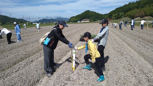 子どもと一緒に植付け