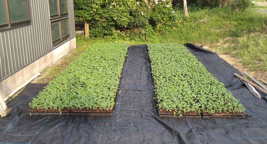 丹波篠山黒枝豆は、128穴セルトレイに播種を行い10日間育苗し、育った苗を専用の植付け器具で一株ずつ植付けします。今年は、47.8a(4,780平方メートル )の圃場を用意し、72枚のセルトレイで育苗を行いました。