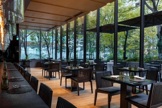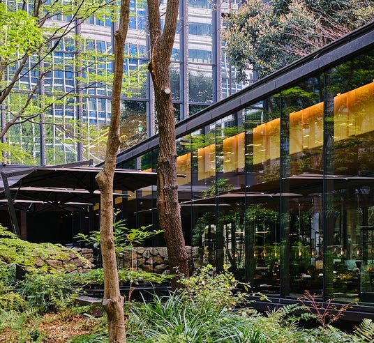 アマン東京が位置する大手町タワーの麓に広がる「大手町の森」に囲まれたカフェ。大手町の森は、周辺や皇居に生息する植物を検証し、千葉・君津で3年かけて育てられた後、大手町に移植して創られた自然の森です。