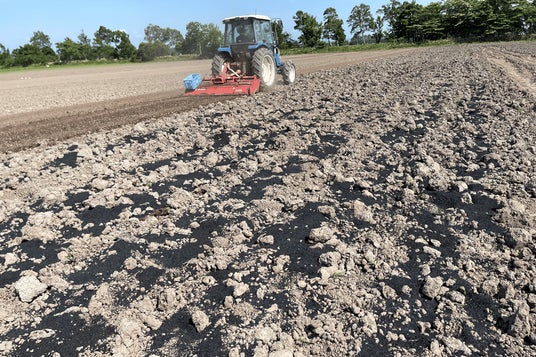 野村ファーム北海道の農地に宙炭を散布して耕す様子