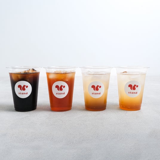 (左から)アイスコーヒー、アイスティー(ダージリン)、クラフトジンジャーエール、アロマコーラ