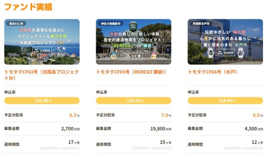 トモタクでは、これまでに80以上のファンドを運用し、そのうち47ファンドの運用終了および償還を完了しています。すべてのファンドで当初の予定通りの利回りを実現しており、元本毀損や配当遅延は一度も発生しておりません。