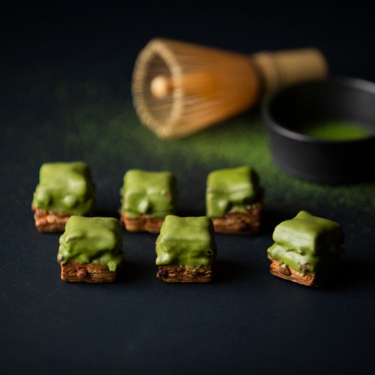 クロワッサンのさくさくラスクに抹茶チョコをコーティング。