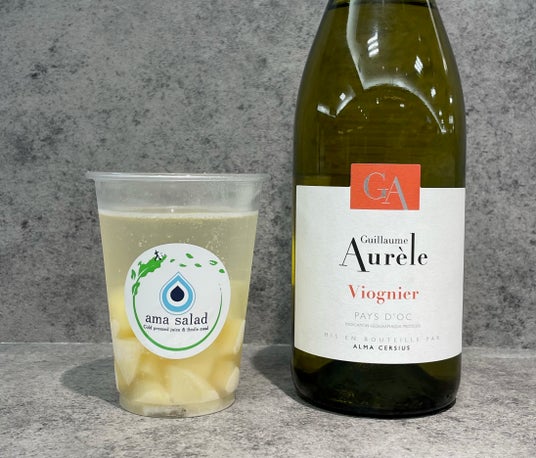 酒売場が厳選したアプリコットの香り広がるワインに、アマサラダが厳選した格別の甘さ広がる岡山産樹上熟成桃を丸ごと凍らせて贅沢に一個分カップインしました。完熟した甘い桃とワインの華やかな香りと味わいが楽しめる、10周年限定のオリジナルサングリアです。