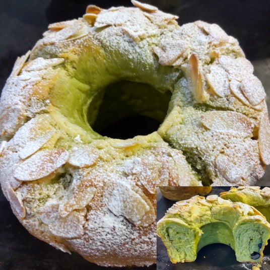 宇治の抹茶を使ったブリオッシュ生地に、甘い黒豆を入れて焼きあげました。