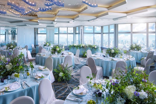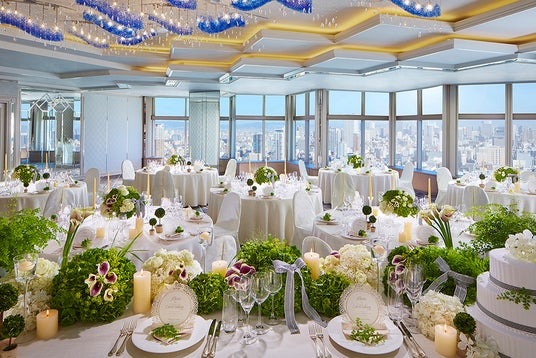 地上140mからの絶景を望む美しい空間をはじめ、ホテルロビーでのドラマティックな「アトリウムウェディング」に柔らかな自然光が差し込むチャペルや日本古来の神前式が叶う神殿での挙式、そしてこだわりの料理に遊び心を感じる花束まで、特別な日にふさわしい夢のウェディングをお手伝いいたします。