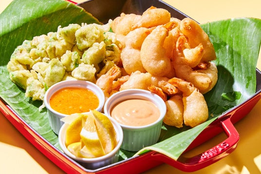海老とアボカドのフリット マンゴータイディップ・チポトレマヨ・レモン