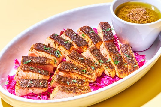 サーモンのケイジャンスパイスロースト ケッパーオリーブソース