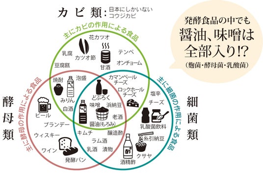 「発酵」とは、微生物(麹菌、酵母や乳酸菌など)のはたらきによって食物が変化し、人間にとって有益に作用すること。「麹菌」・「酵母」・「乳酸菌」と三種類の微生物全てが入っている発酵食品は、世界的に見ても「醤油」と「味噌」と「どぶろく」が挙げられますが、この3つが揃うのは日本だけ、極めて日本的な発酵食品と言えます。