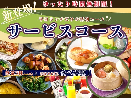 バラエティー豊かな食べ放題が楽しめる『ニラックスブッフェ』3店舗にて、平日ランチ限定のお得なコース『サービスコース』が新登場いたしました!