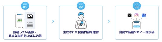 確認が完了した投稿内容は、LINE上での簡単な操作で各種SNSに一括投稿されます