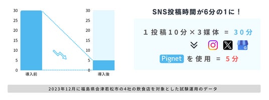 通常30分かかるSNS投稿作業が、本サービスの利用によりたった5分に短縮されました。これは、1投稿に10分かかると仮定した場合、3つのプラットフォームへの投稿がそれぞれ10分ずつかかる計算に基づいています。つまり、従来の方法に比べて83%の時間削減が実現されました。