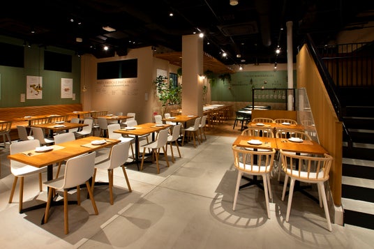 レストランは1F、2F、2Fテラスに客席があり、テラスのソファーは開放感があり人気の席。