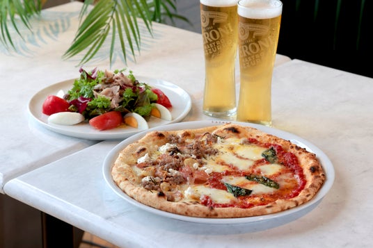 イタリアの製法にこだわって生産された新鮮なカワバ・チーズを楽しむ3周年限定のハーフ & ハーフのピッツァ。