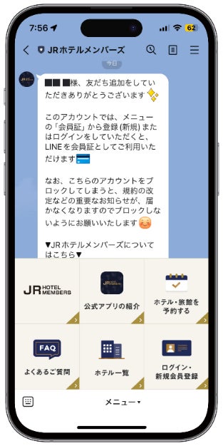 ※ID連携をしていただくと、JRホテルメンバーズ公式アカウントが友だち追加されます