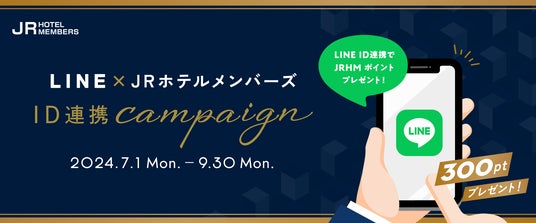 LINEでの会員証の提供開始に伴い、2024年7月1日(月)12:00(正午)~9月30日(月)の期間、「LINE×JRホテルメンバーズ ID連携キャンペーン」を実施いたします。キャンペーン期間中にLINE ID連携していただいたJRホテルメンバーズ会員さま(新規入会含む)を対象に、もれなくJRホテルメンバーズポイント「300pt」をプレゼントいたします。