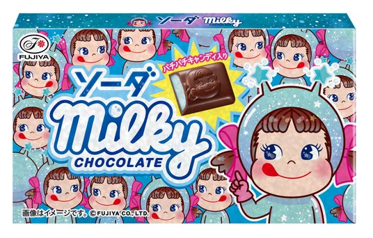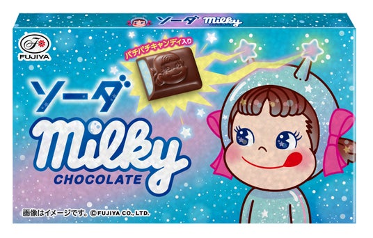 ミルキーのおいしさをチョコレートにぎゅっと閉じこめた「ミルキーチョコレート」より、暑くなる時期にぴったりな期間限定の新商品が登場します。昨年発売し好評だった「ソーダミルキー袋」をチョコレートで表現しました。