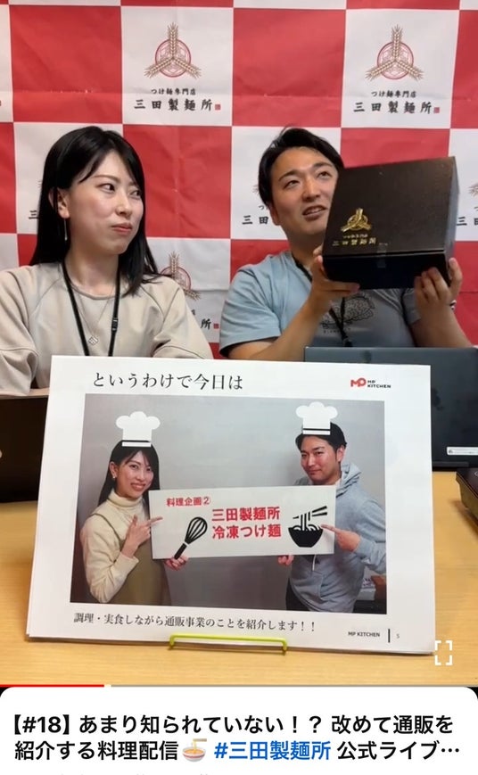エムピーキッチンオンラインショップは2020年にオープン。三田製麺所の『冷凍つけ麺』や渋谷餃子の『冷凍つけ麺』を、全国のご家庭へ出荷しております。三田製麺所公式LIVE配信の『#みたラジ』では、オンラインショップの詳しい紹介や、冷凍つけ麺の調理・実食を行っております。是非ご覧下さい。