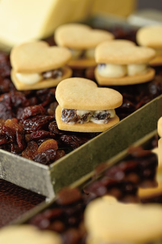 発酵バターを30%配合したサクサククッキーに、ラムがほんのり香るレーズンクリームをはさんだ、ちょっと大人のサンドクッキーです。