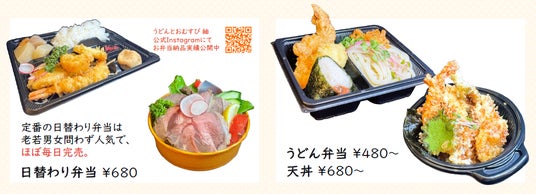 コスパ抜群! 定番の日替わり弁当・うどん弁当・天丼