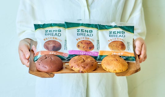 発売早々から品薄状態となった「ゼンブブレッド」は、小麦粉を使わないグルテンフリーで糖質オフのパン。スーパーフードである「黄えんどう豆」を主原料に、バターや卵、牛乳を使わず、ふんわりもちもちの食感を実現した“まるごと豆粉パン”です。