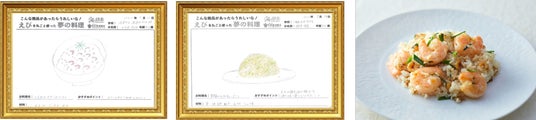 1.一流レストランのシェフが「夢の料理」を作ってくれる!「えび丸ごと夢の料理コンテスト」は、ただ夢のエビ料理を描くだけではありません。テレビでも紹介される一流レストランのシェフが審査員となり、優秀作品はシェフが実際に作ってくれるのです。昨年は、優秀作品から着想を得た「海老パフェ」のレシピを、東京・麻布十番に店舗を構えるイタリアンの名店「ピアットスズキ」の鈴木シェフが考案、商品化。また、日本を代表する中華料理店ともいえる「トゥーランドット臥龍居」の脇屋シェフは「干し海老の旨み!プリプリ海老ご飯」と題したレシピを商品化してくれました。自分の考えた料理を一流のシェフが作ってくれるという、子どもたちにとっては夢のあるコンテストです。