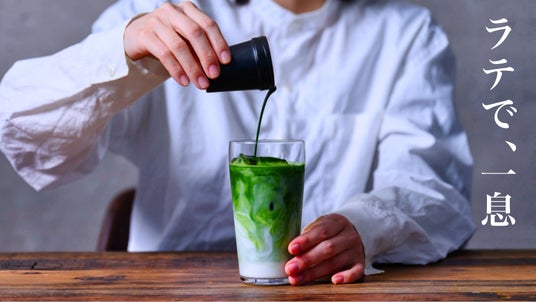 左:緑と白のコントラストが美しい『和カフェのような抹茶ラテ』は、濃さも甘さも自由自在です。