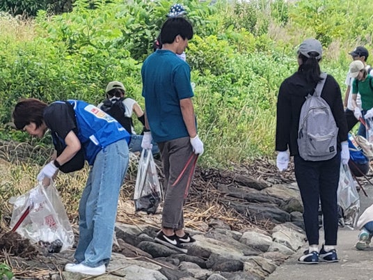 6月16日の実施日は、主催の荒川クリーン・エイド、および共催のパナソニックホールディングス(株)、(公社)日本フィランソロピー協会(JPA)の方々約100名に当社関係者約30名が加わり、総勢約130名で河川ごみを拾いました。
