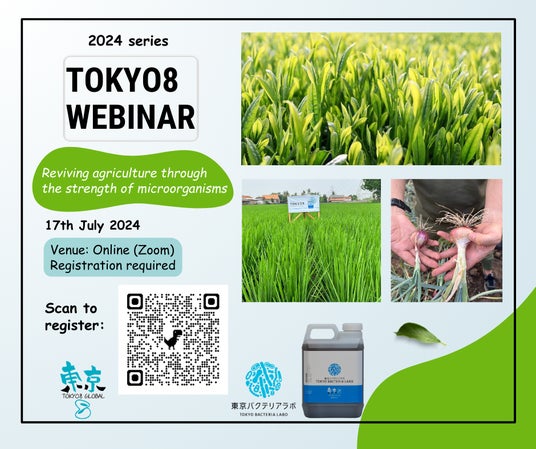 (株)太陽油化並びに(株)TOKYO8 GLOBAL(本社:東京都板橋区、代表取締役 石田太平)は、2024年7月17日水曜日午後4時から、有機JAS認定資材登録のバイオスティミラント土壌改良材「東京8」の栽培事例報告会をZOOMウェビナー形式で開催します。グローバルサウスの農業支援を現地とパートナーシップを組んで展開すべく、TOKYO8 GLOBALはフランチャイズ展開でインドネシア・フィリピン・アフガニスタンといったアジア、マラウイ・モーリタニア・モザンビークといったアフリカ諸国へも展開をしております。年に2回の定期開催されるWEBINARでは各国の栽培報告と、各国フランチャイズの展開報告がなされます。