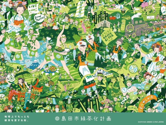 静岡県島田市のシティプロモーション「島田市緑茶化計画」のブランドメッセージ。お茶生産量日本一の静岡県で1、2位を誇る産地であり、総面積5,000ヘクタールと日本一の広さを誇る牧之原大茶園を有し、江戸時代初期から続くお茶文化が市民の生活に深く根ざしていることから島田市の独自表現としてメッセージを作成・使用しており、プロモーションや企業コラボレーションにも用いている。