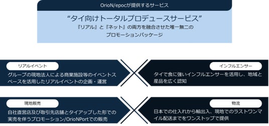 「食で世界をつなぐ」をミッションに食の新しい流通をプロデュースする株式会社epoc(本社:東京都、代表取締役社長:佐藤信之)と「日本の食・文化・ブランドを世界へ」をコンセプトに、日本の産地と現地をつなぐオンラインプラットフォームを運営する株式会社OrioN(本社:東京都、代表取締役社長:浜辺拓)は、タイ向け食品輸出プロモーション事業を共同で実施することに致しました。