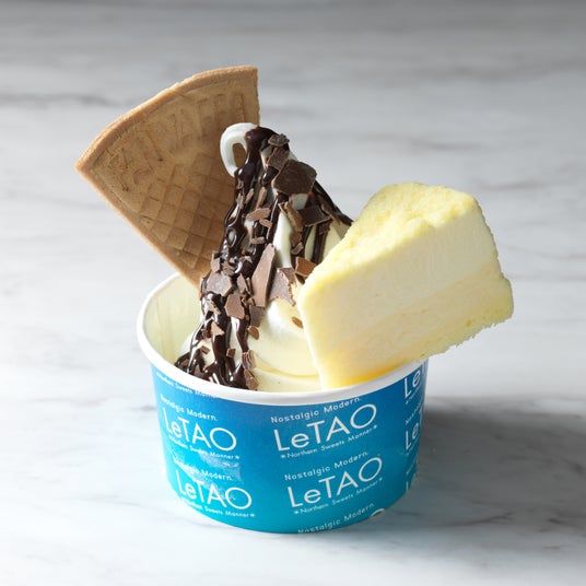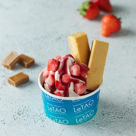 濃厚でミルキーなジャージーミルクソフトに、ほどよく甘酸っぱいフランボワーズソースと苺のダイスをのせて、チーズとキャラメルの味わい深いルタオプラス限定の「ブリックオフロマージュ」を飾ったパルフェです。ベリーのさわやかな味わいと、ブリックオフロマージュの風味が相性の良い一品です。