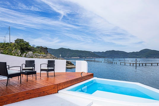 日生諸島の透き通った海に白と青を基調とした建物が映え、海外リゾートかのような絶景を演出。フォトジェニックな絶景の中でのご滞在をお楽しみください。