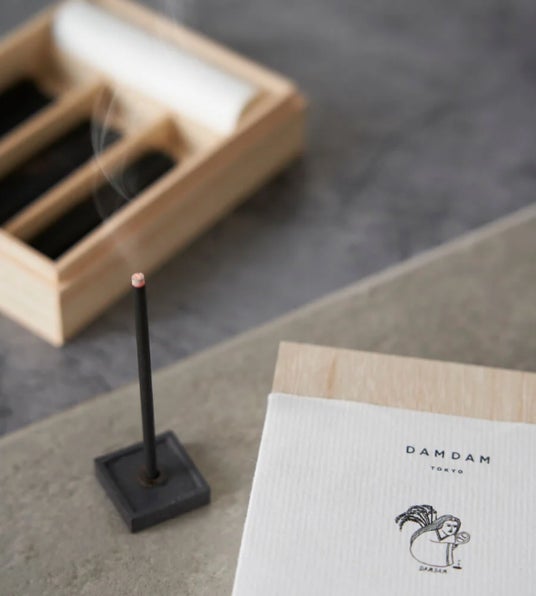 日本の職人技と伝統的な自然成分を生かしたスキンケアブランド<DAMDAM/ダムダム>が、大阪の老舗メーカー“玉初堂”と共同で制作するお香。「SHISO」は、思わず深呼吸したくなるようなすっきりとした紫蘇の香り。「OSMANTHUS」は、やさしい香りで気分を高めてくれる金木犀の香りです。