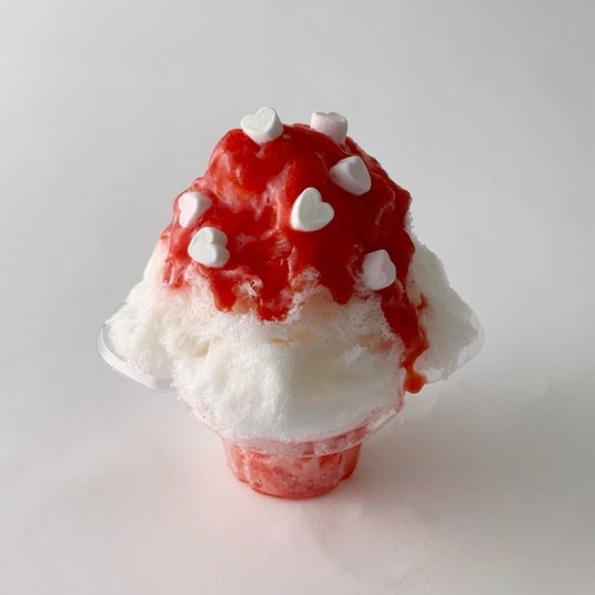 まっかないちご 900円(税込)ミニハートマシュマロのトッピングがかわいい、イチゴ味のかき氷です。