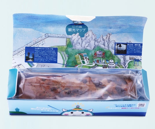パッケージ表面には江の島が見える浜辺で砂遊びを楽しむふじキュン(ハート)の水彩画風のイラストをあしらい、その背面では藤沢市、メルシャン藤沢工場、ありあけ湘南工場を紹介。内面は「江の島観光マップ」を最新のレイアウトに衣替えいたしました。パッケージ表面と同じデザインの新「ふじキュン(ハート)マグネット」を1個入れてお届けします。