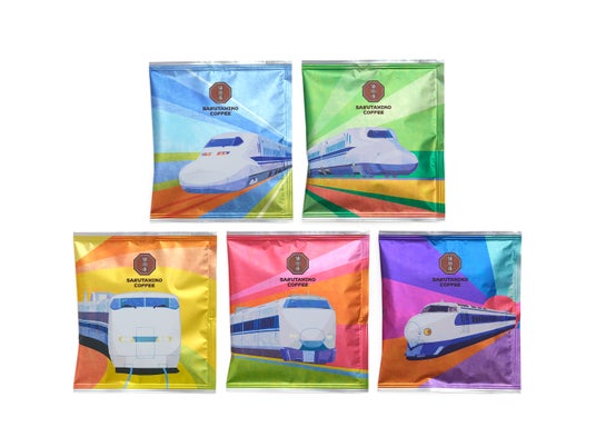 60年間走り続け、多くの人々を繋いできた東海道新幹線の軌跡に共感し、引き続き猿田彦珈琲もコーヒーを通じて、人や文化と繋がり幸せを届けたいと思い、60年の歩みを味わいで表現。鉄道史の歴史に名を刻む5種類の車両をもとにデザインしたオリジナルブレンドドリップバッグを開発いたしました。