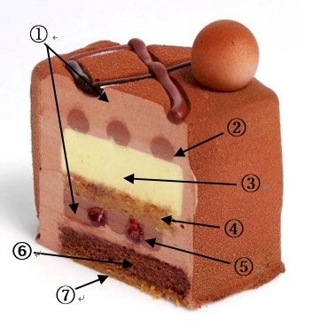 藤野が「チョコレートに秘められた本当の美味しさを味わっていただきたい」と試行錯誤した本作品は、4日間かけて仕上げます。4種類のチョコレートを使用することで、味わいの変化や滑らかな口当たりを表現し、パウンドケーキなどを組み合わせて食感のバランスを調整するなど、きめ細かく考えられたこだわりの一品です。