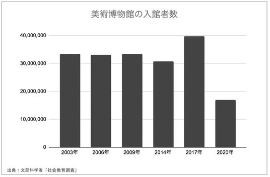 文部科学省が3年に1度行っている「社会教育調査」によると、美術館の入館者数は2017年の3,981万人から2020年の1,704万人へ、約57%に減少しています。新型コロナウイルスの影響が主な要因ですが、SAKE HUNDREDでは、美術館やアートの個人所有など、さまざまな形でアートと触れる機会を支援し、パーパスである世界中の人々の『心を満たし、人生を彩る』ブランドとして、提供する価値をいっそう高めてまいります。