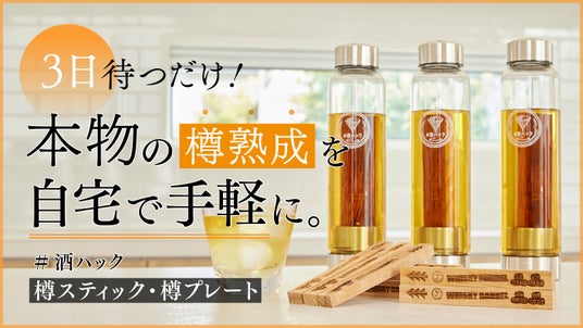 ・わずか半日でいつものお酒を風味豊かな樽熟成酒に。国産銘木使用の「#酒ハック」