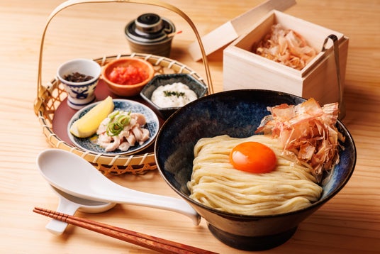 北海道産ガゴメ昆布と土佐清水の宗田節から丁寧に取ったおダシに、タピオカ粉を練り込んだつるもち特注麺。