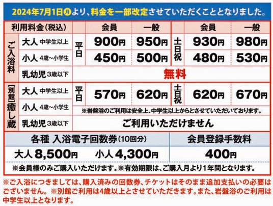 ■つかしん天然温泉「湯の華廊」利用料金(税込)について
